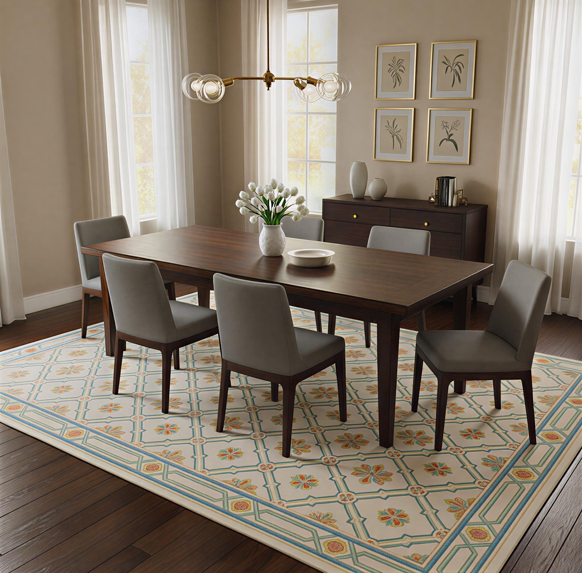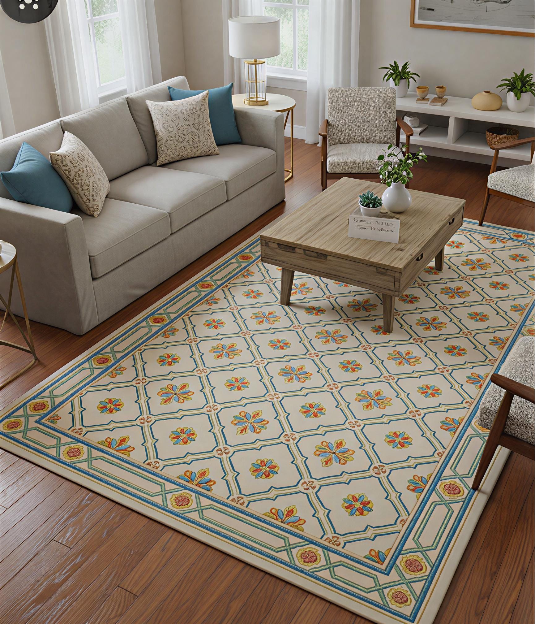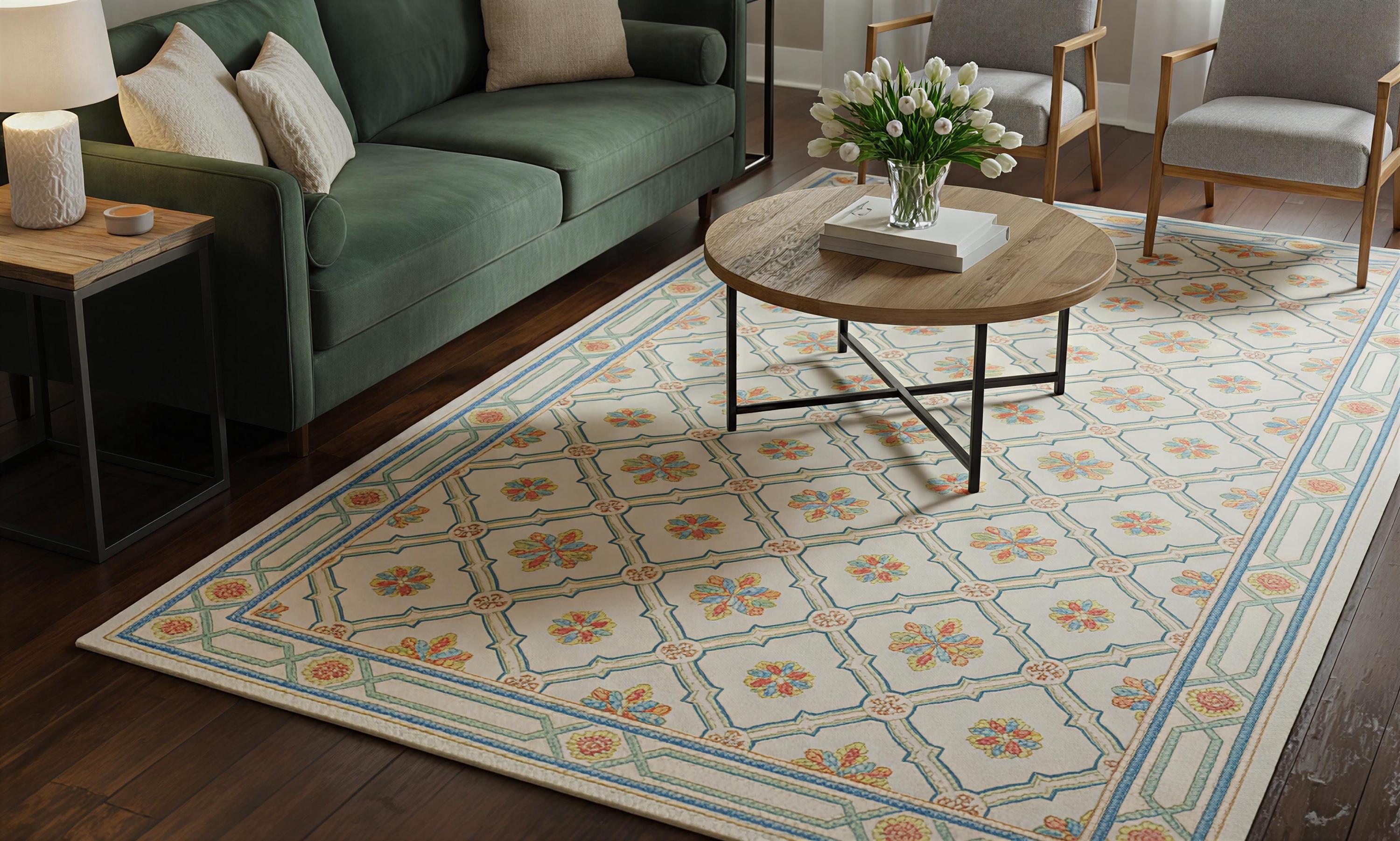 Versatile Neutral Palette: The cream-toned base with subtle colorful accents provides a flexible foundation for any interior design style.
