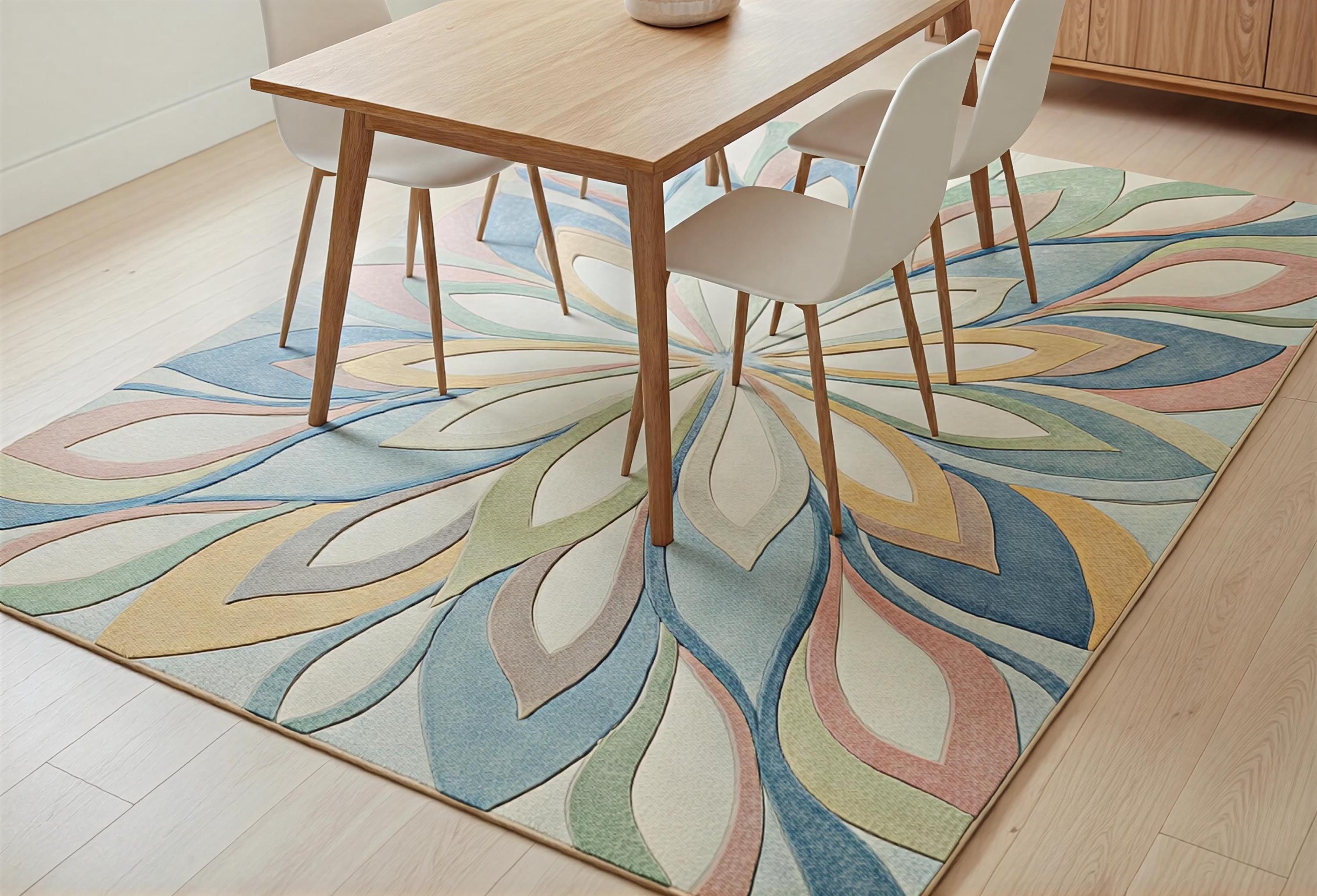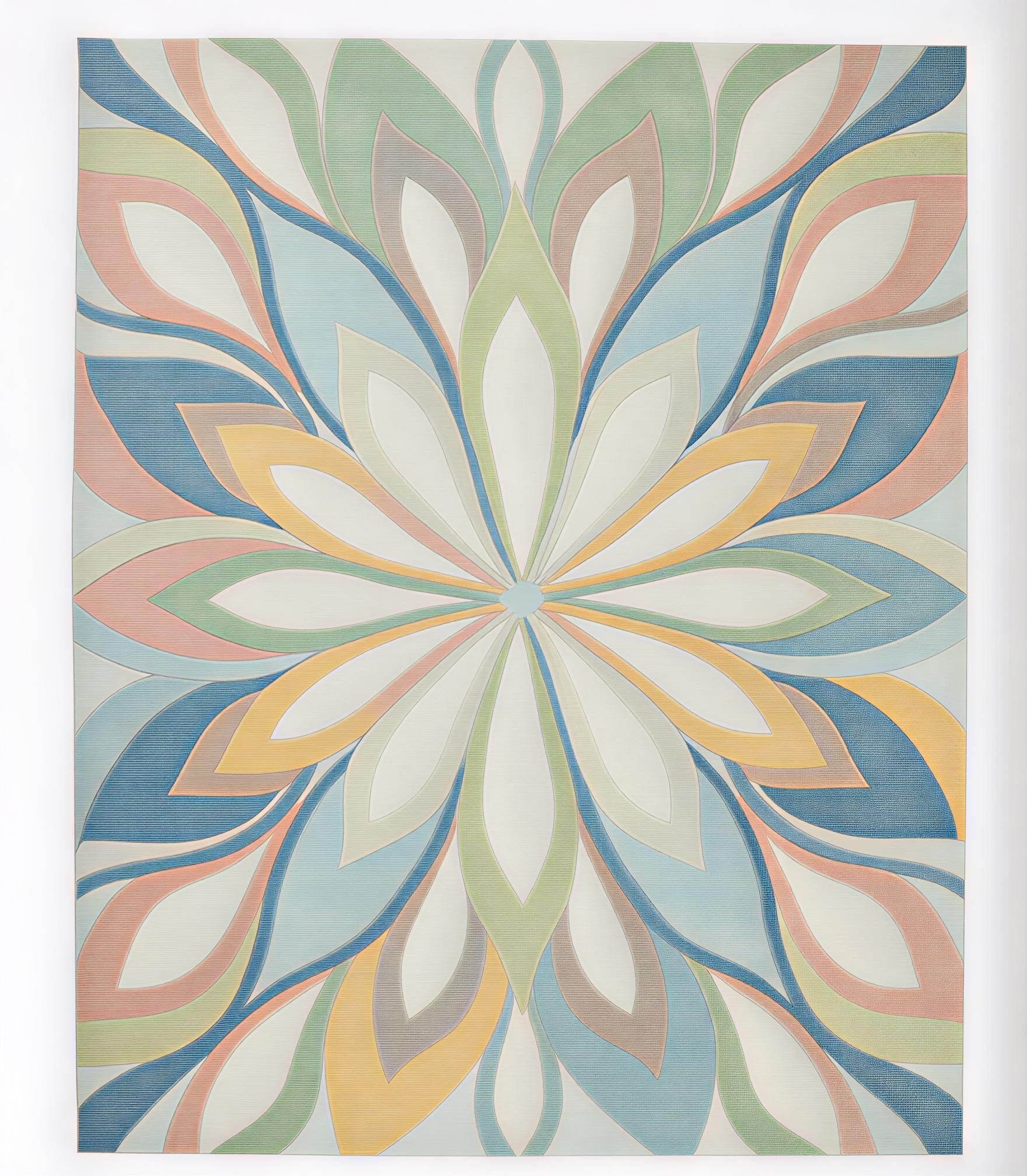 Featuring a breathtaking pastel petal design, this colorful wool rug uses varied pile heights to create a stunning three-dimensional effect. Meticulously handcrafted, the vibrant bloom of soft pinks, blues, and sage greens brings a sense of modern organic art to your floors. Whether you are styling a nursery or a creative living room, this rug serves as a plush, tactile centerpiece.