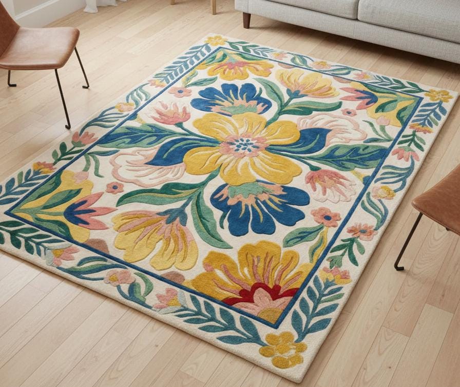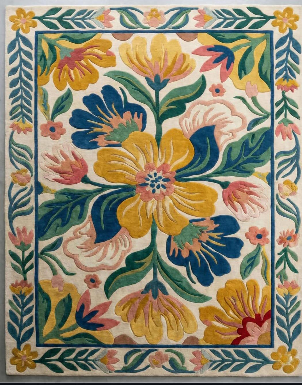 Experience the plush comfort of our Hand Tufted Floral Wool Rug, a vibrant Botanical Area Rug designed to bring warmth and artisan craft to your home. This Large Colorful Flower Rug is meticulously handcrafted using premium wool, making it an ideal statement piece for a Modern Boho Living Room or a sophisticated bedroom. By blending traditional hand-tufting techniques with a contemporary botanical palette, we’ve created a durable, high-quality floor covering that meets the high standards of both homeowners and interior designers. ### Why This Piece Stands Out Artisan Craftsmanship: Each rug is hand-tufted by our skilled weavers in Bhadohi, India, ensuring a level of detail and quality that mass-produced rugs cannot match.