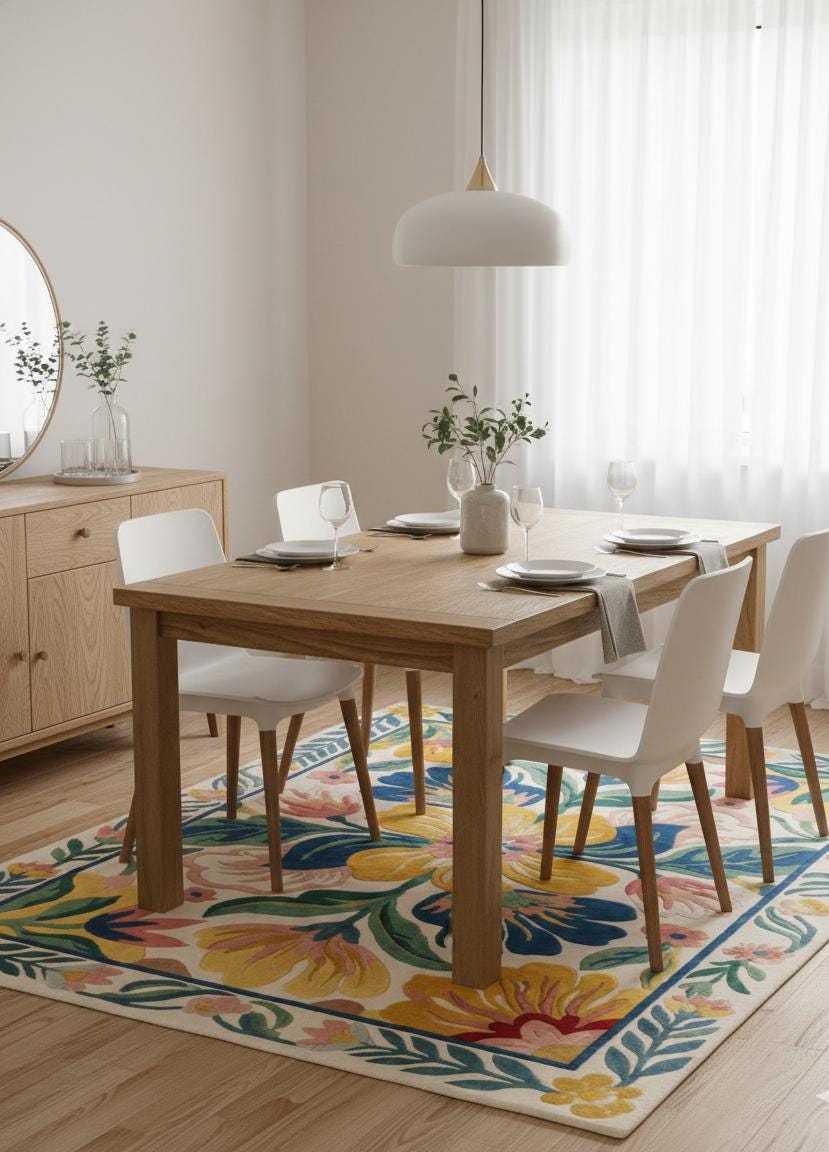B2B Ready: With its heavy-duty cotton canvas backing and reinforced edges, this rug is durable enough for high-traffic residential or boutique commercial projects.
