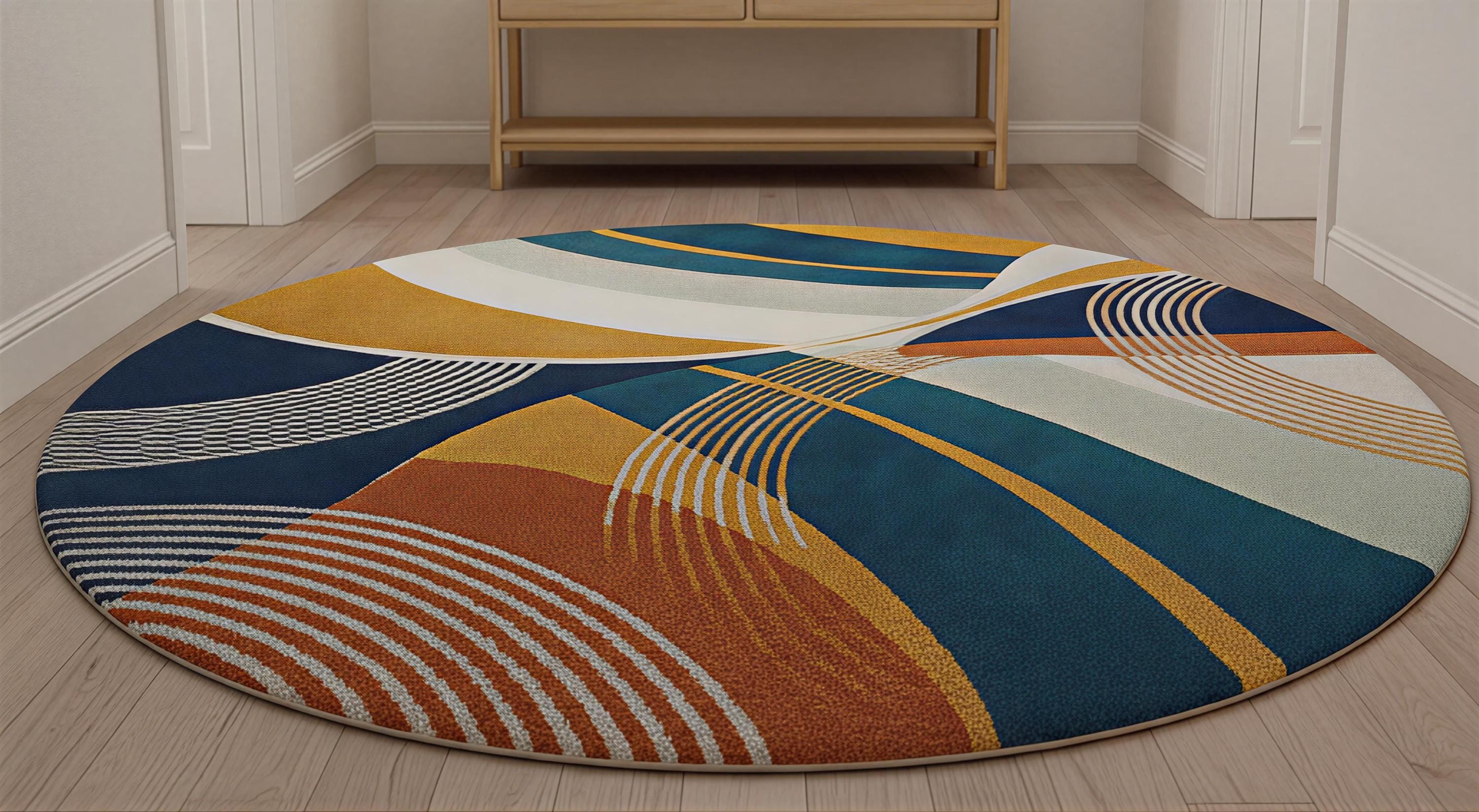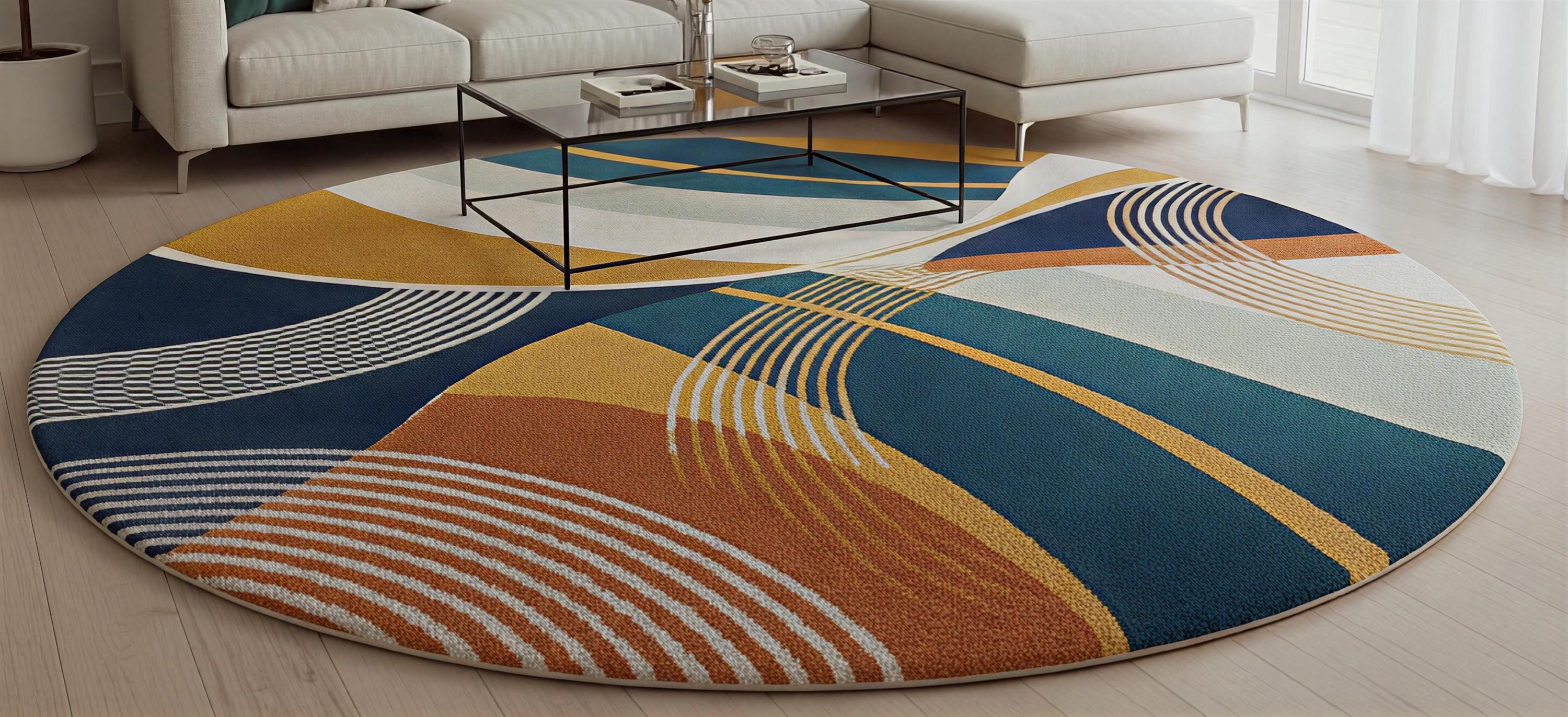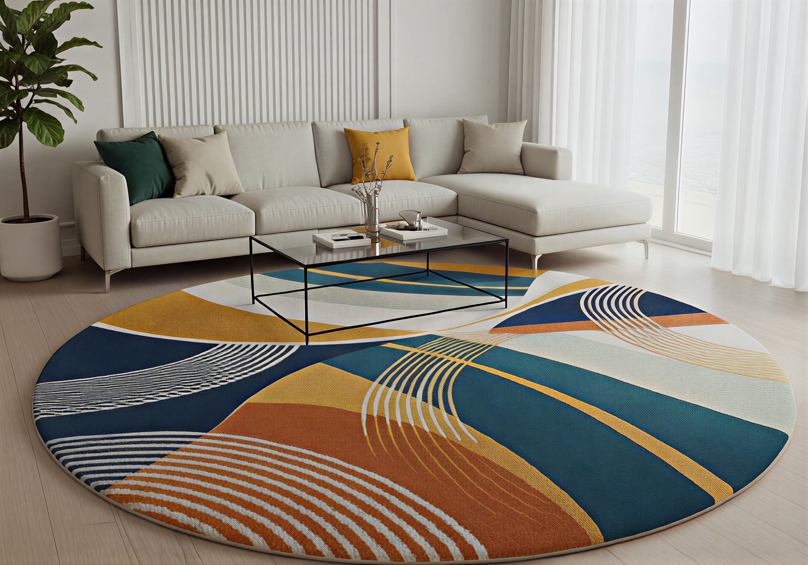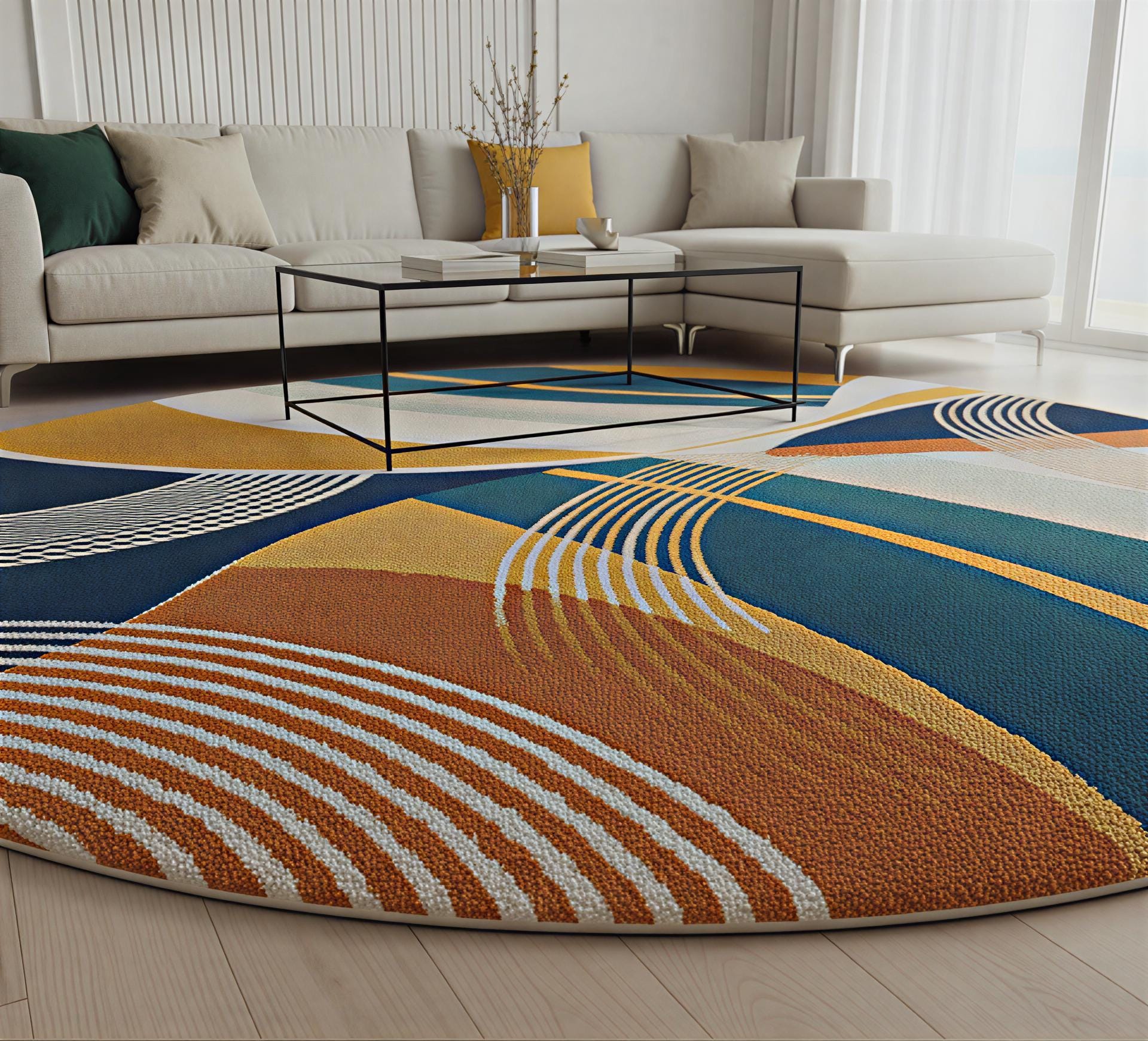 Transform your floor into a masterpiece with our Mid-Century Abstract Round Rug.