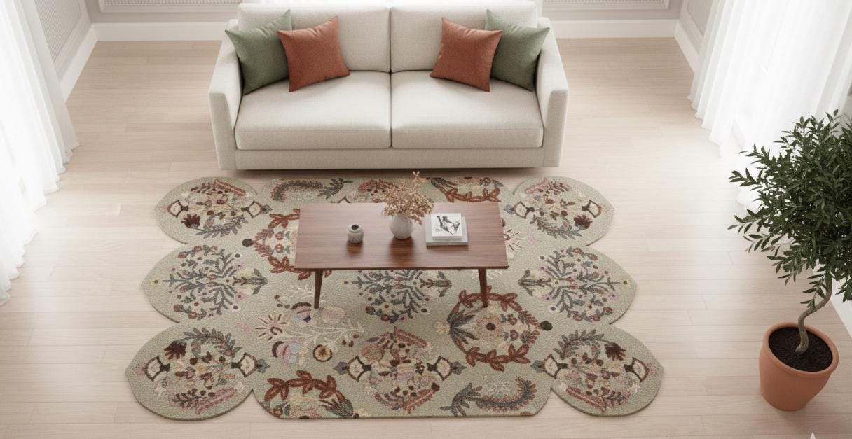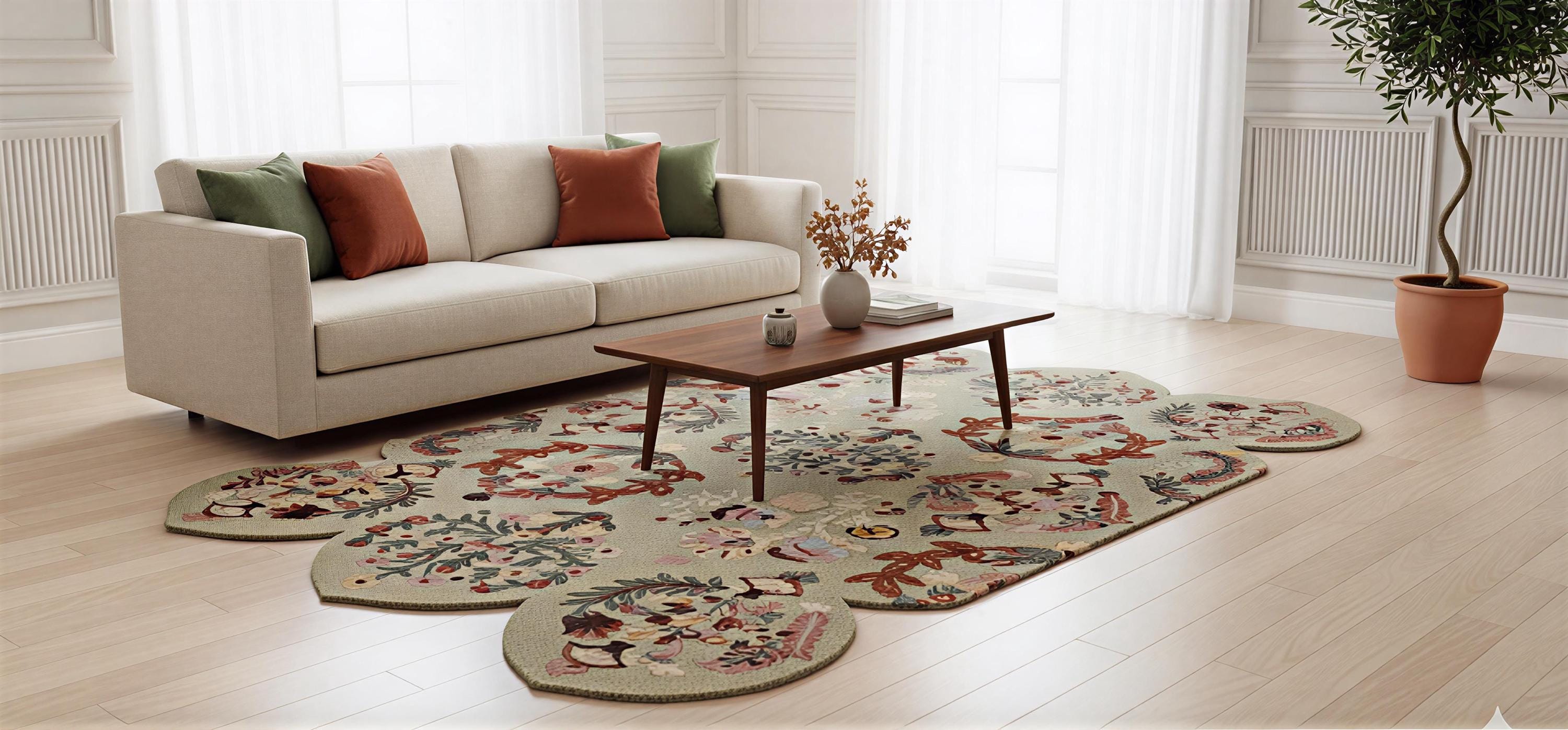 Distinctive Scalloped Silhouette: The wavy edge provides a modern, architectural alternative to standard rectangular carpets, perfect for a cottagecore or boho aesthetic.