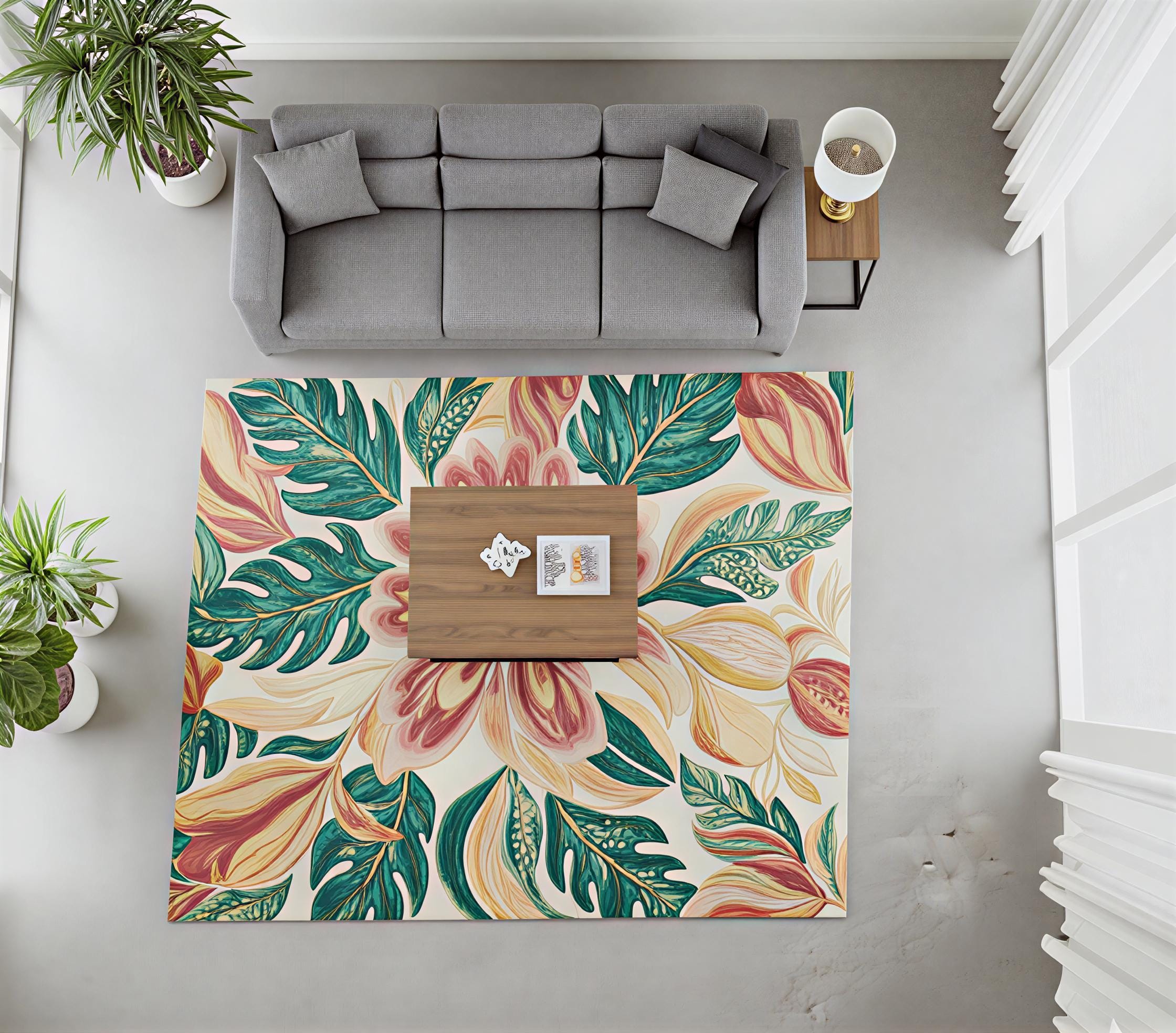 Transform Your Space with Bold Botanical Art Elevate your home with this Large Tropical Floral Area Rug, featuring a vibrant Monstera leaf design and an oversized botanical pattern. This maximalist centerpiece brings a lush, high-end aesthetic to any living room, bedroom, or modern office.