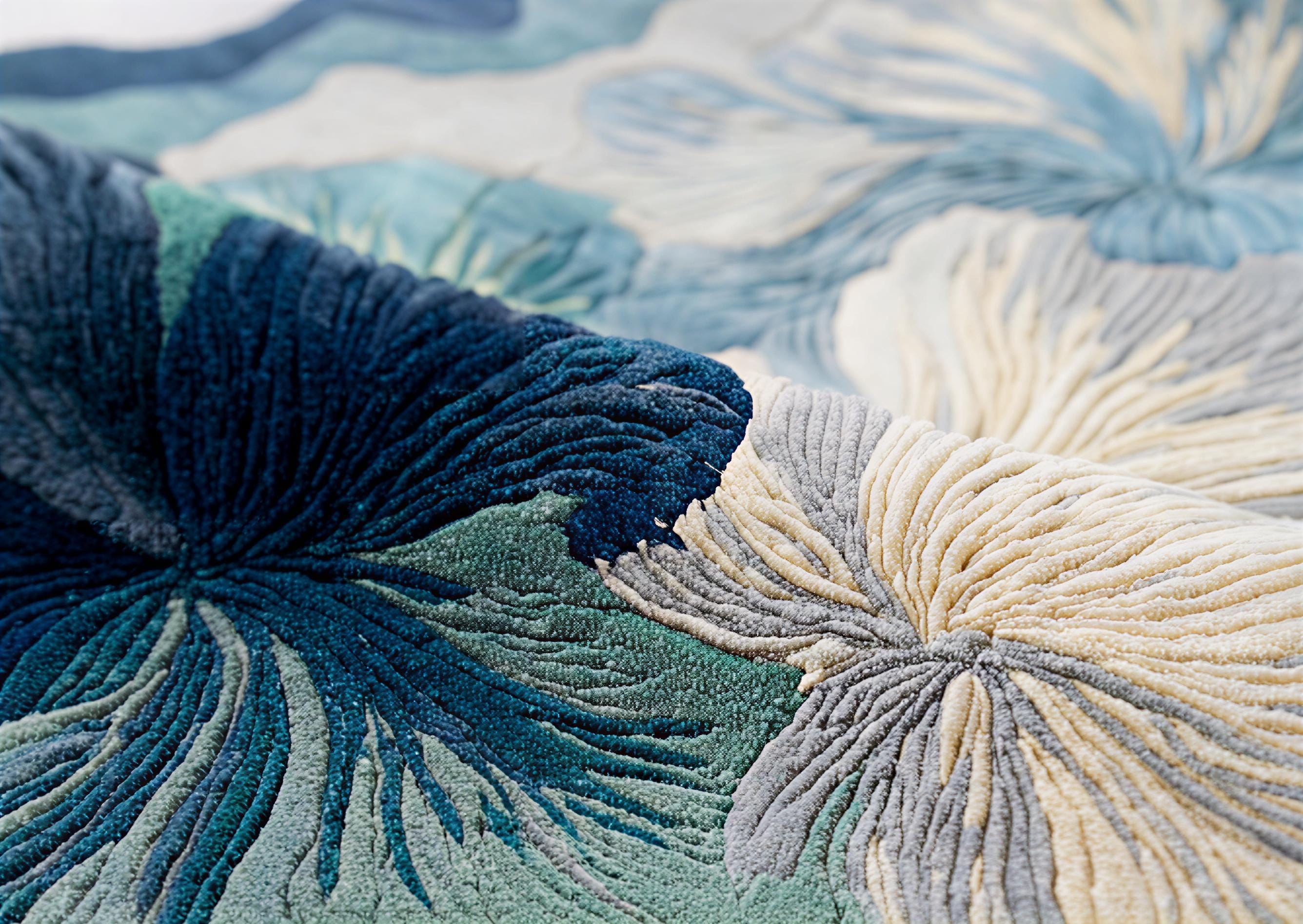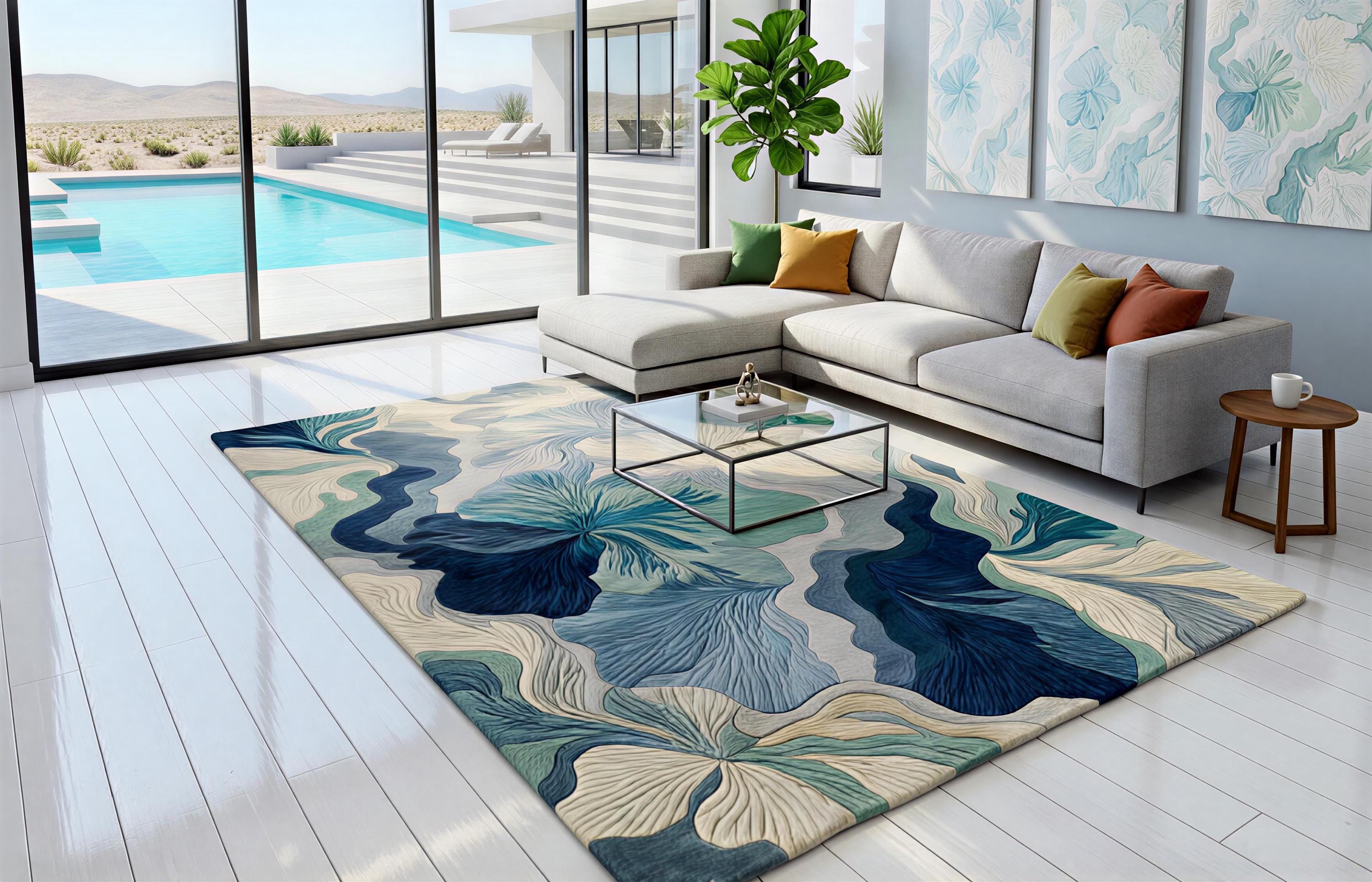 This 3D hand-tufted wool rug brings the calming energy of the ocean into your home with its intricate floral wave design. 🌊✨ Each piece is meticulously crafted using premium wool to create a lush, high-low texture that feels as incredible as it looks.