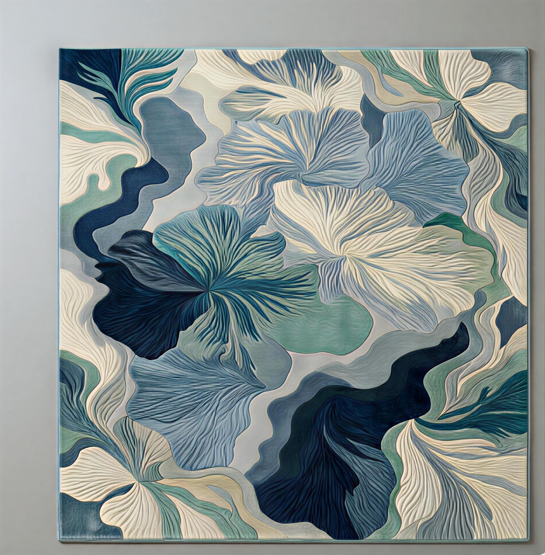 Modern Palette: A beautiful blend of navy, teal, and cream that mimics organic movements and floral blooms.