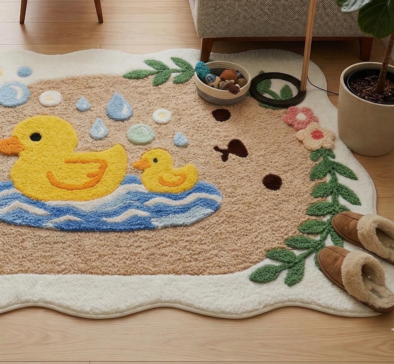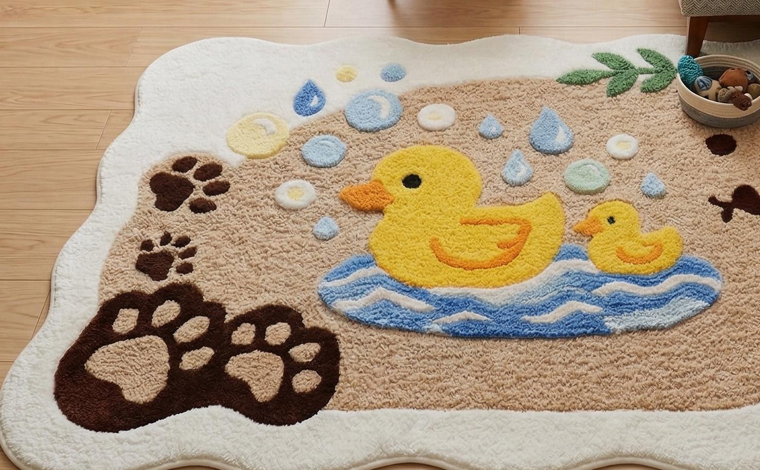 Why Choose Our Premium Wool Rug? Artisanal 3D Texture: Unlike flat-printed rugs, our hand-tufting technique creates a raised, sculptural effect. You can actually feel the "fluff" of the ducks and the "ripple" of the water.