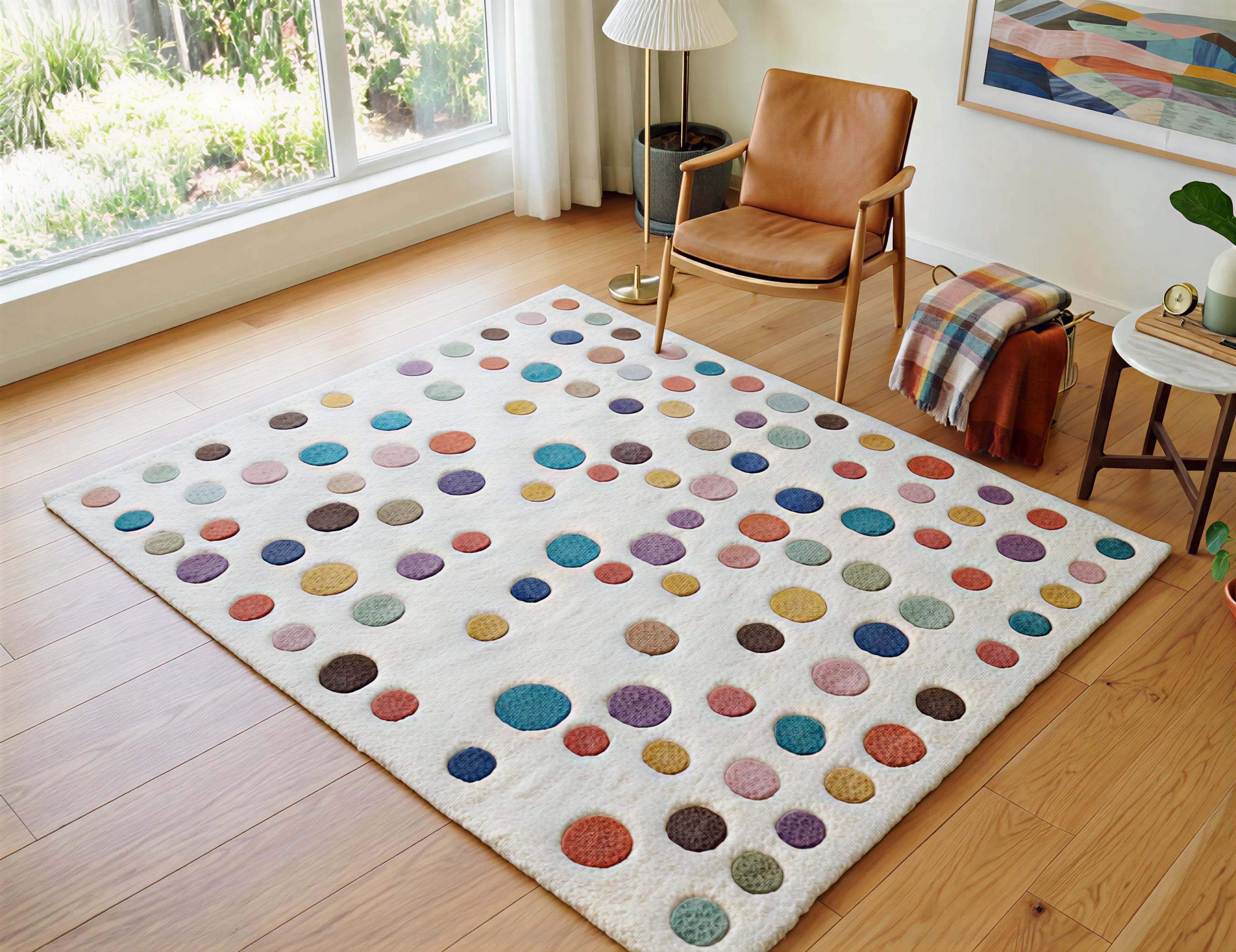 Vibrant Versatility: The multi-colored dots complement a wide range of interior styles, from mid-century modern to eclectic boho.