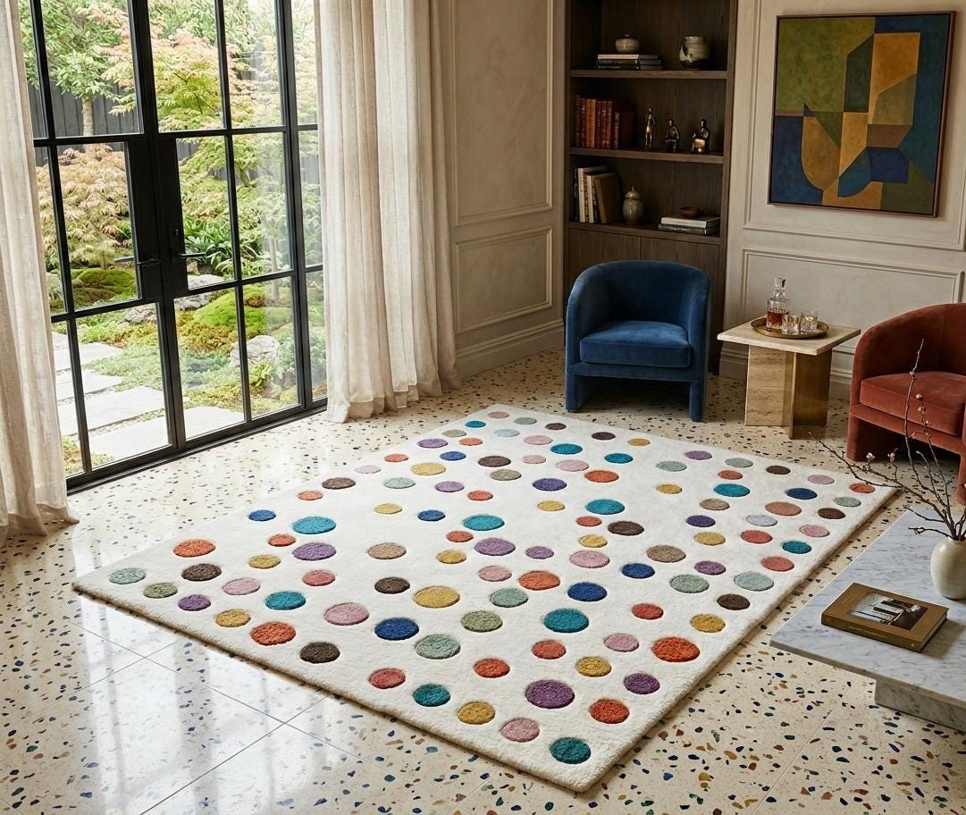 Artisan Quality You Can Feel Hand-tufted by skilled artisans, each rug is made from 100% premium wool, ensuring a dense, plush pile that feels incredible underfoot. The scattered dot pattern is carefully rendered in rich, natural dyes, creating a "proof of human" aesthetic that mass-produced rugs simply cannot replicate.