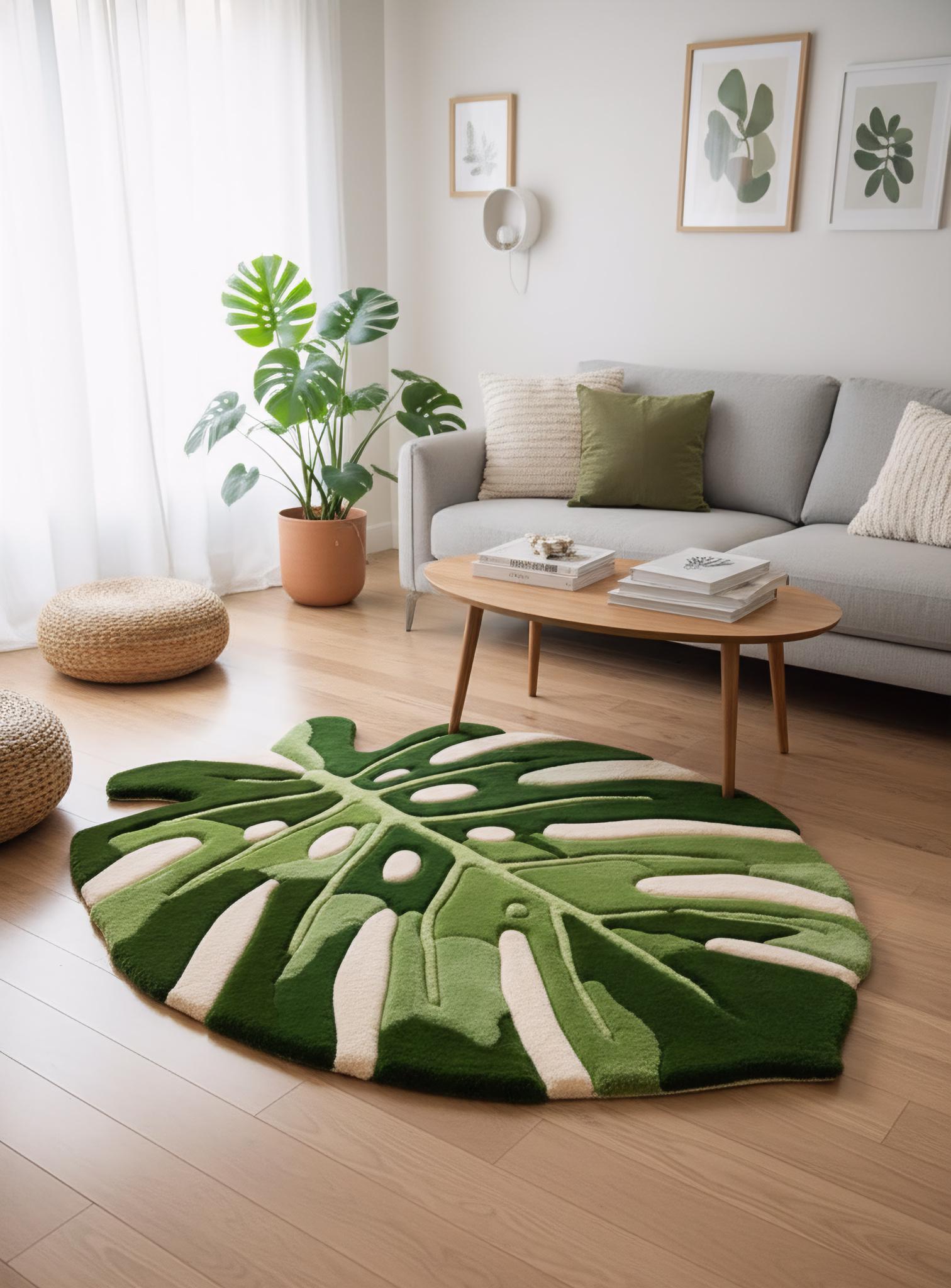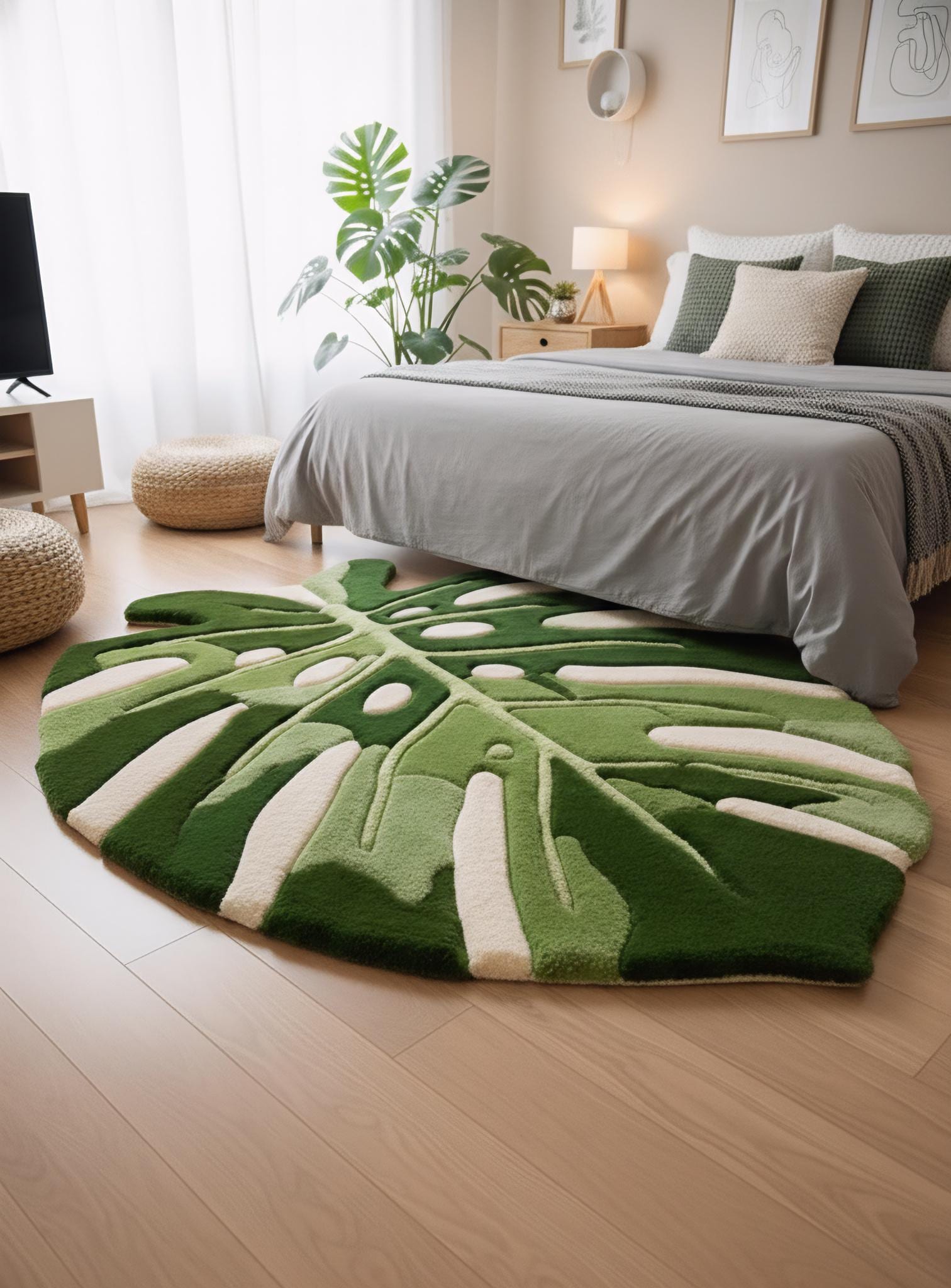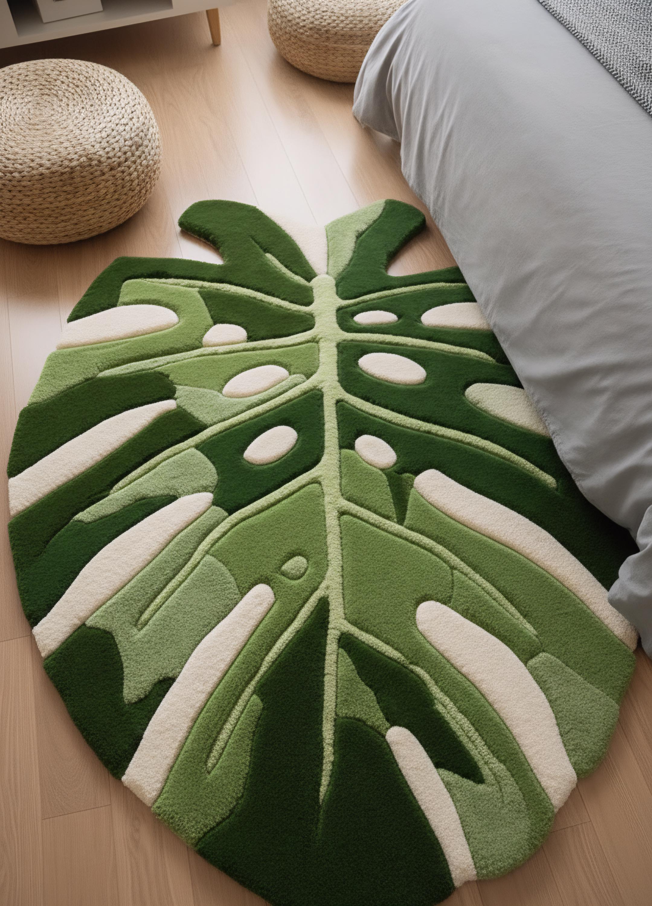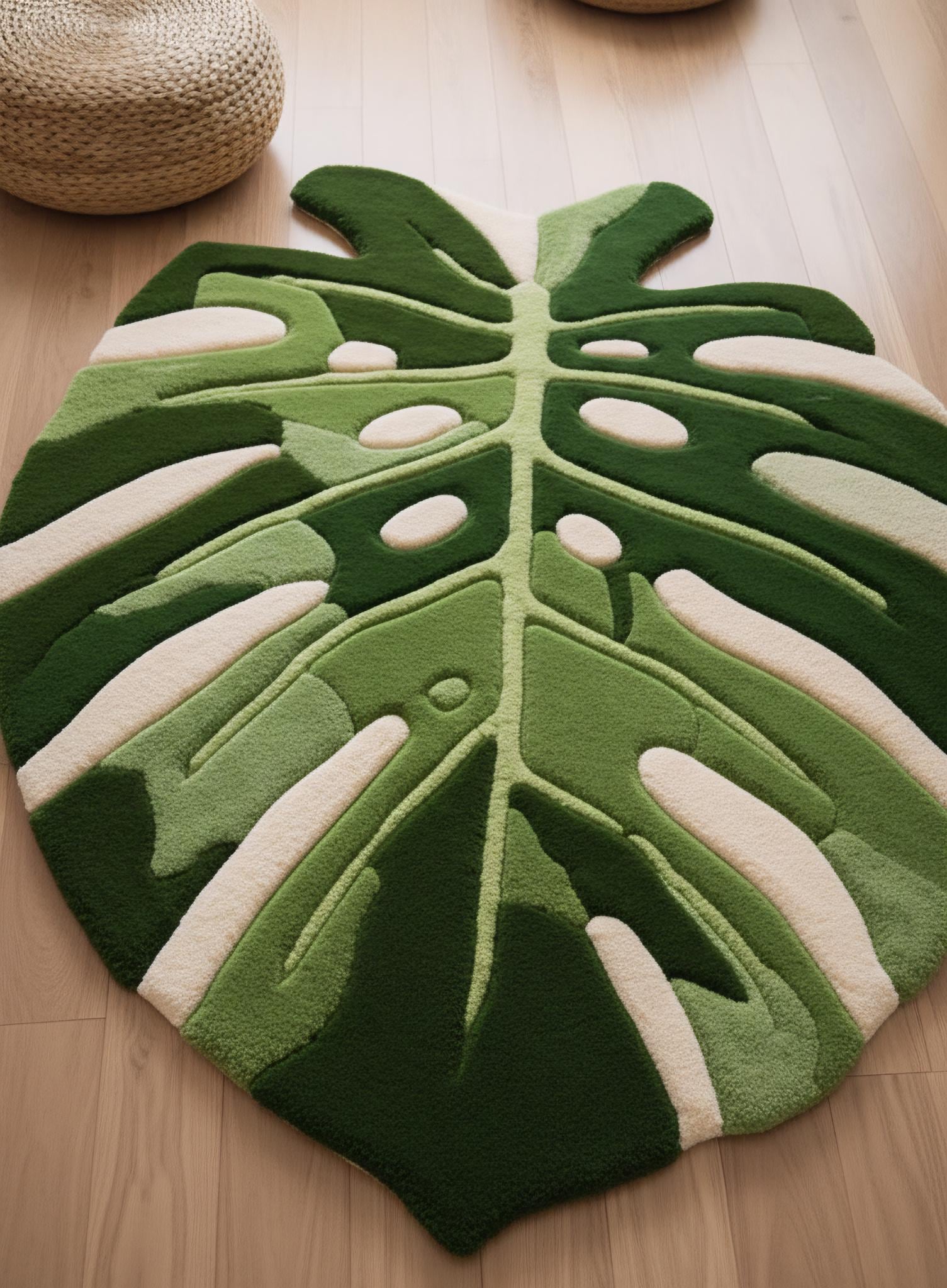 This isn't just floor covering; it’s a sculptural work of art. Designed for the discerning homeowner, our Monstera-shaped textile captures the organic elegance of nature through intricate hand-tufting. By utilizing multi-level pile heights, we’ve achieved a sophisticated 3D depth that mimics the physical veins and shadows of a living leaf.