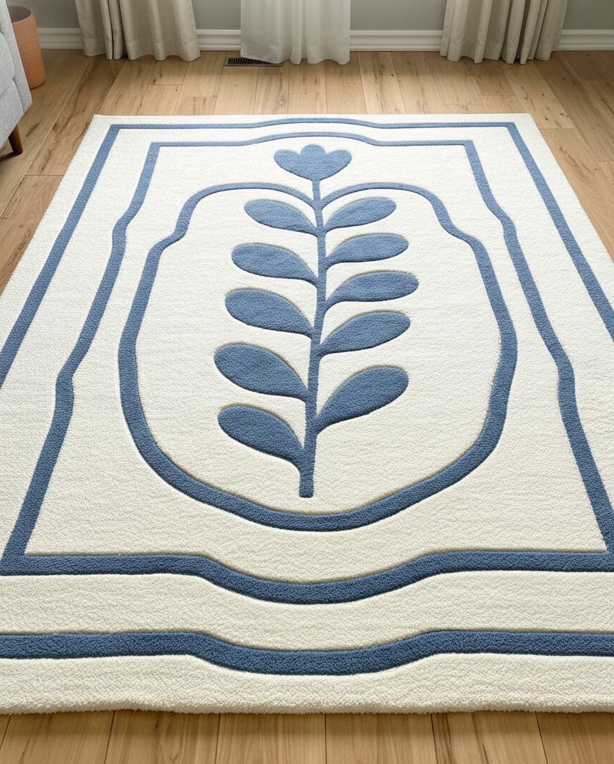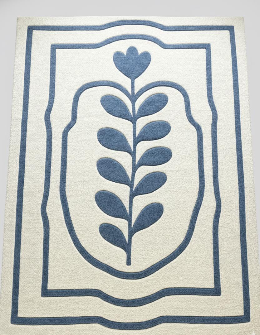 Designed for the discerning eye, our artisan-crafted wool textile marries the warmth of organic modernism with a clean, Scandinavian aesthetic. The striking navy blue leaf motif is hand-rendered against a soft, oatmeal-beige backdrop, creating a centerpiece that feels both grounded and sophisticated.
