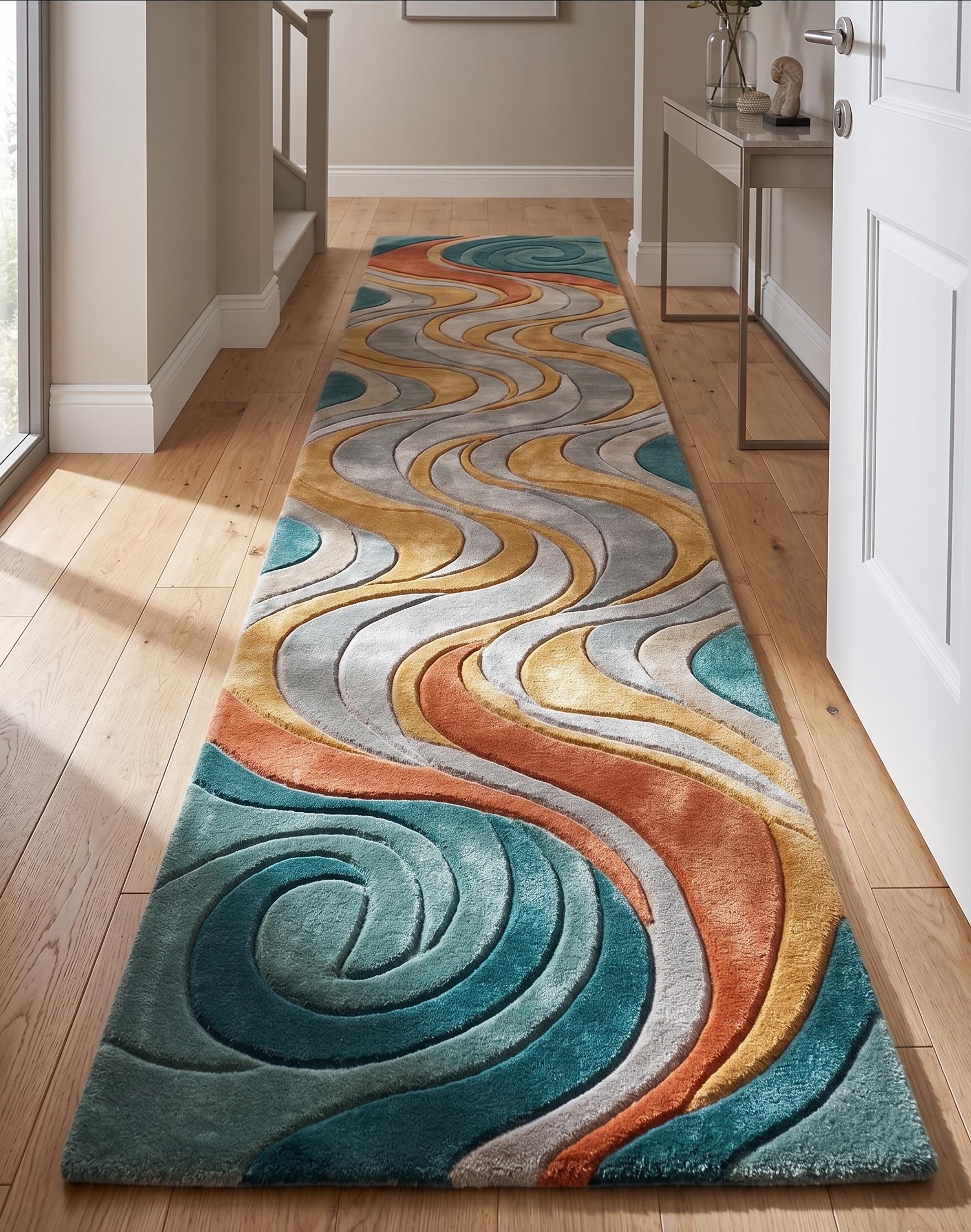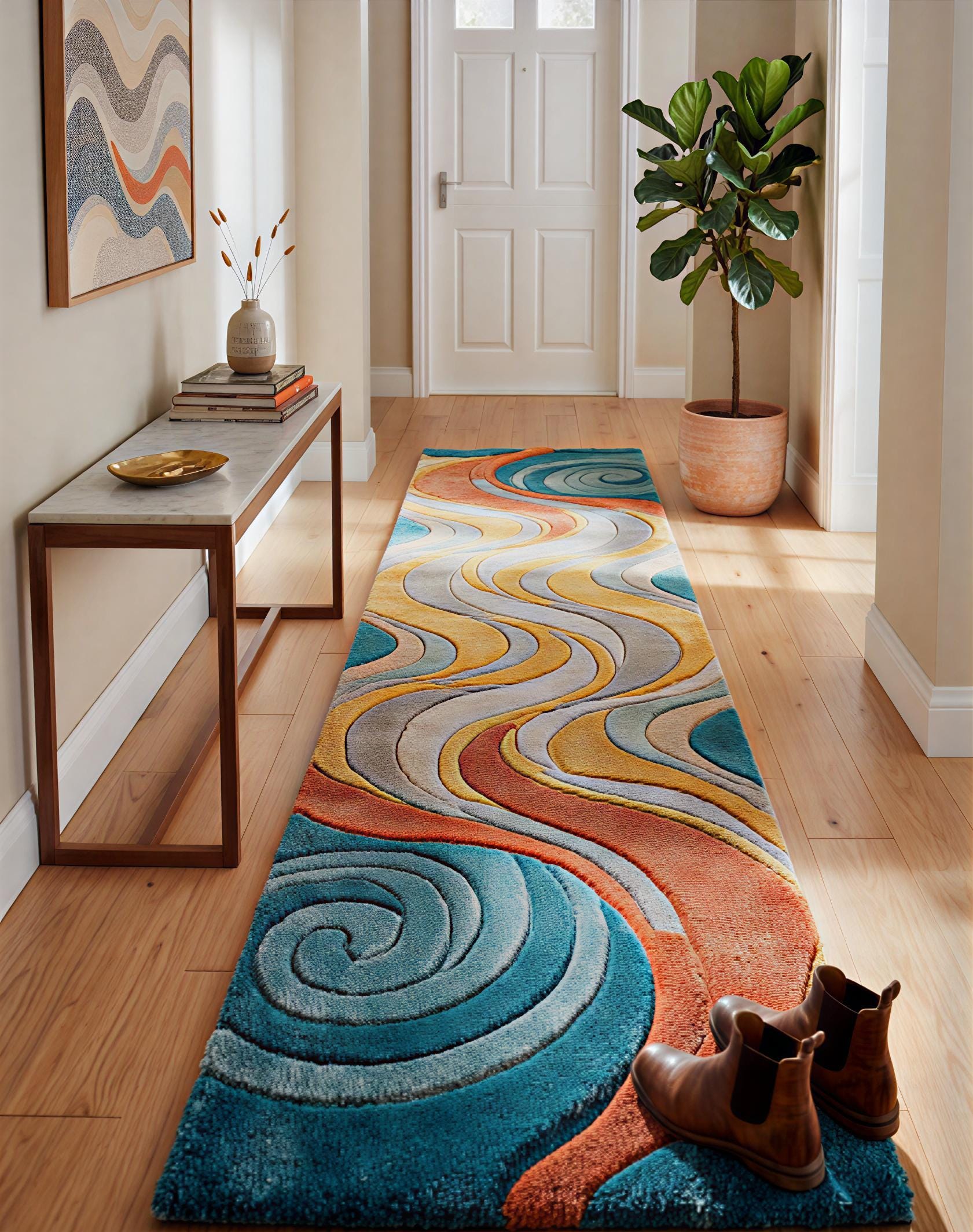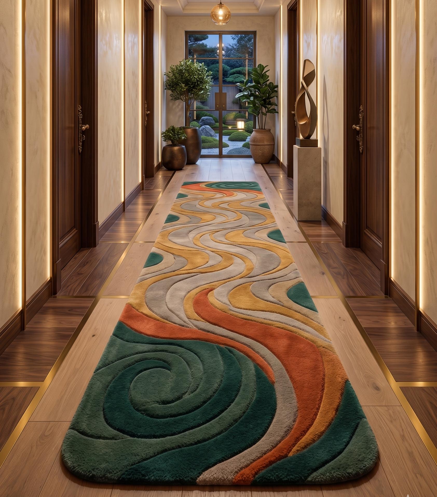 The Artisanal Difference: Dimensional Topography: Each wave is hand-carved to varying pile heights, creating a mesmerizing "sunken" effect that adds architectural depth to your hallway or entryway.