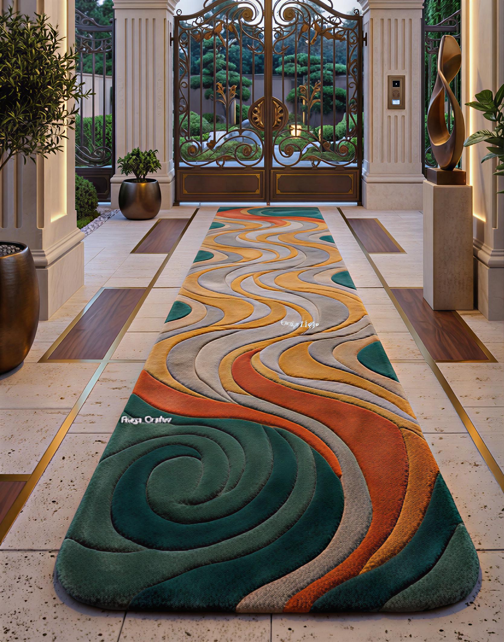 A Sculptural Masterpiece for Your Floors Transform transitional spaces into a curated gallery. This Hand-Tufted Wool Runner transcends traditional floor coverings, featuring a high-definition 3D "swirl" topography that plays with light and shadow. It is a tactile experience designed for those who appreciate bespoke craftsmanship and bold, organic forms.