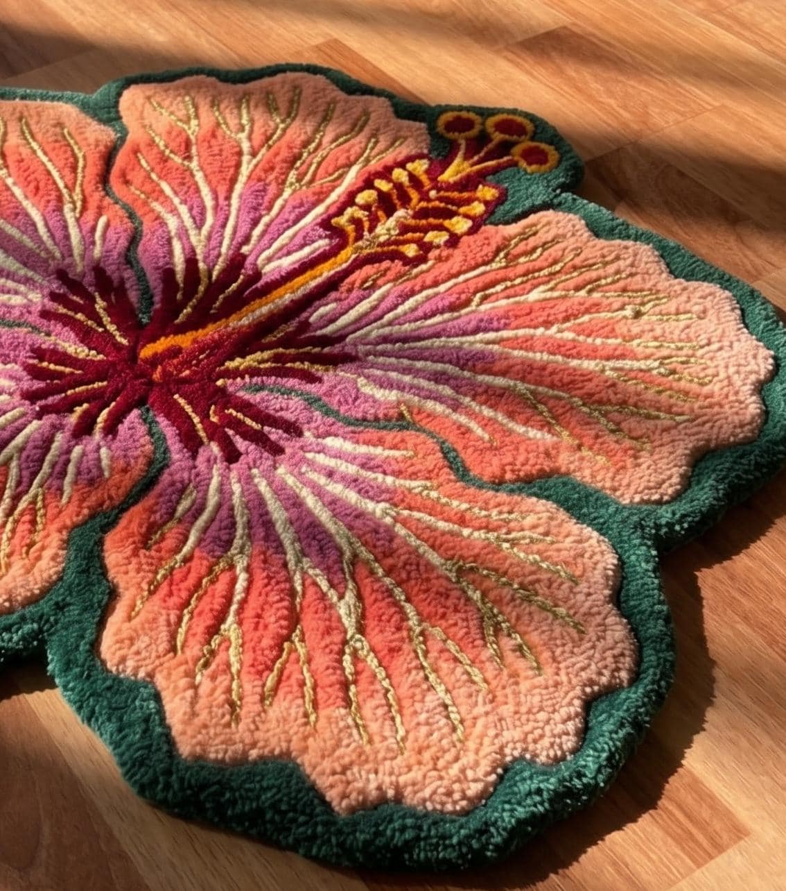 Textural Artistry: Meticulously hand-tufted to create a lush, 3D effect that mimics the delicate veins of a blooming tropical flower.