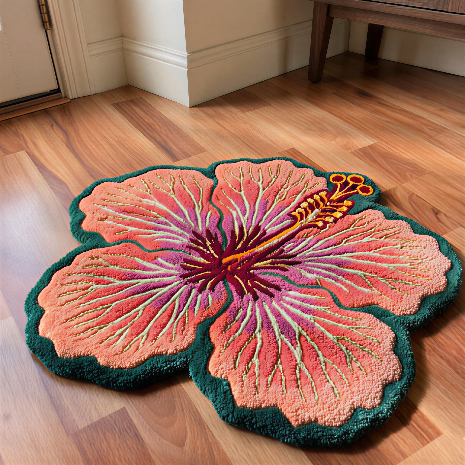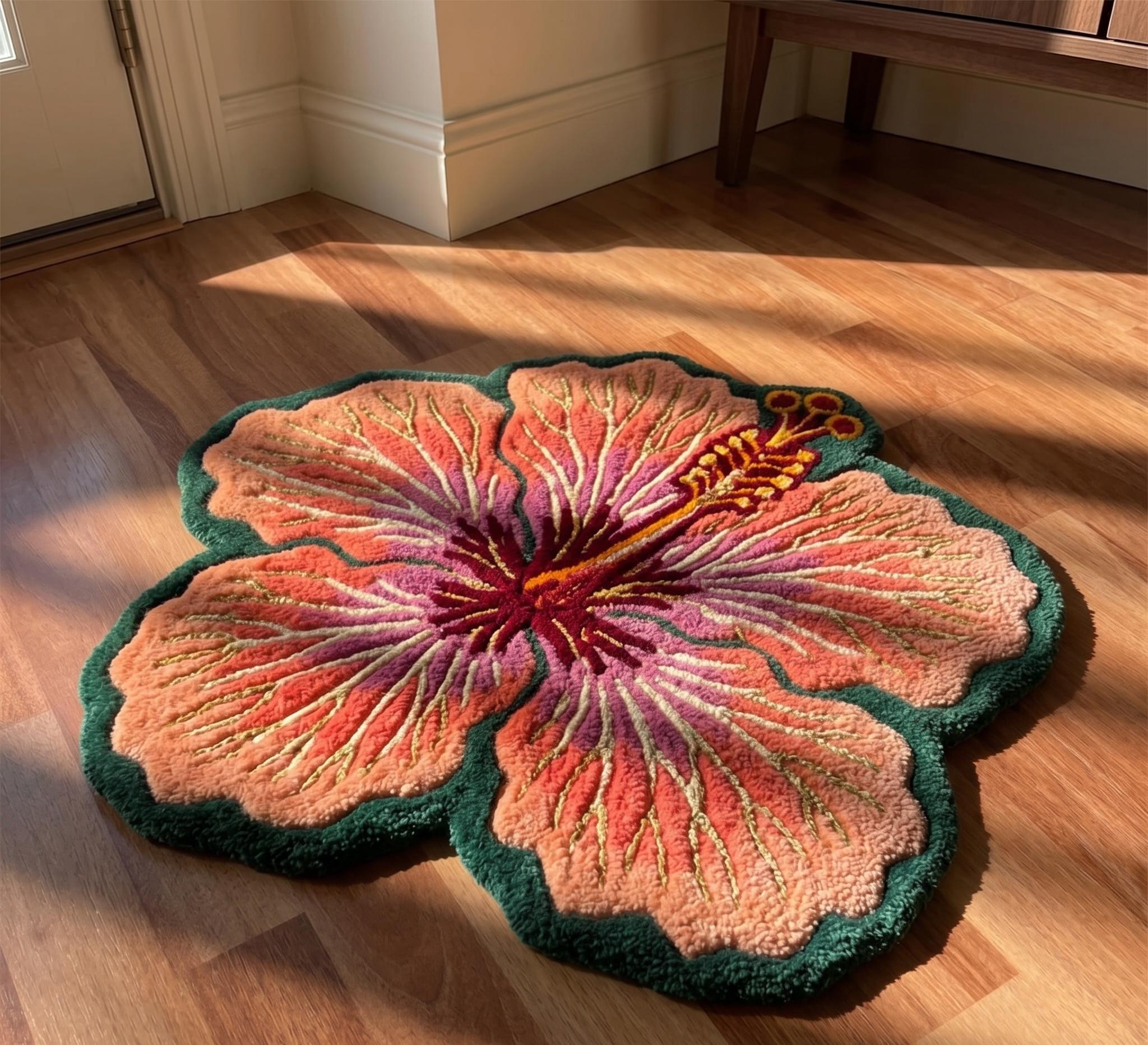 Organic Silhouette: The irregular "butterfly-petal" border breaks harsh room lines, adding movement and warmth to hardwood or tile.