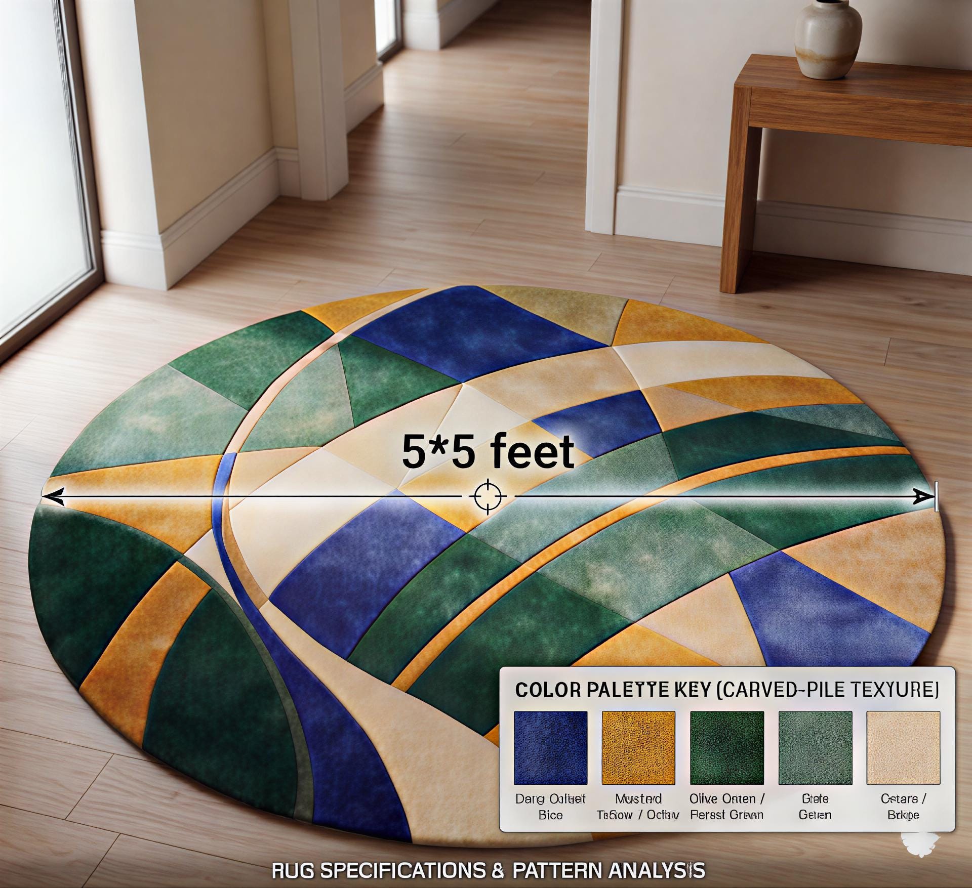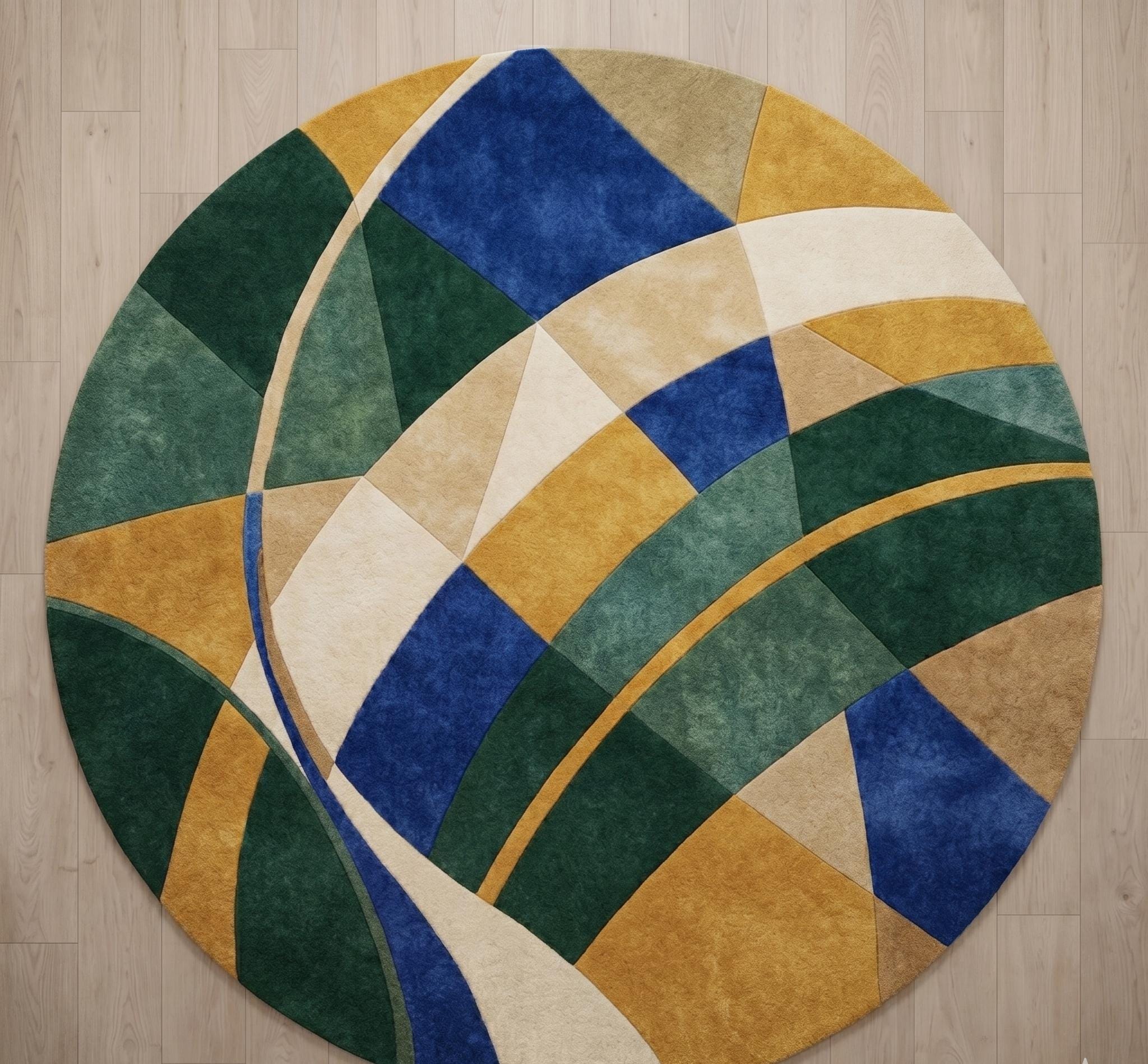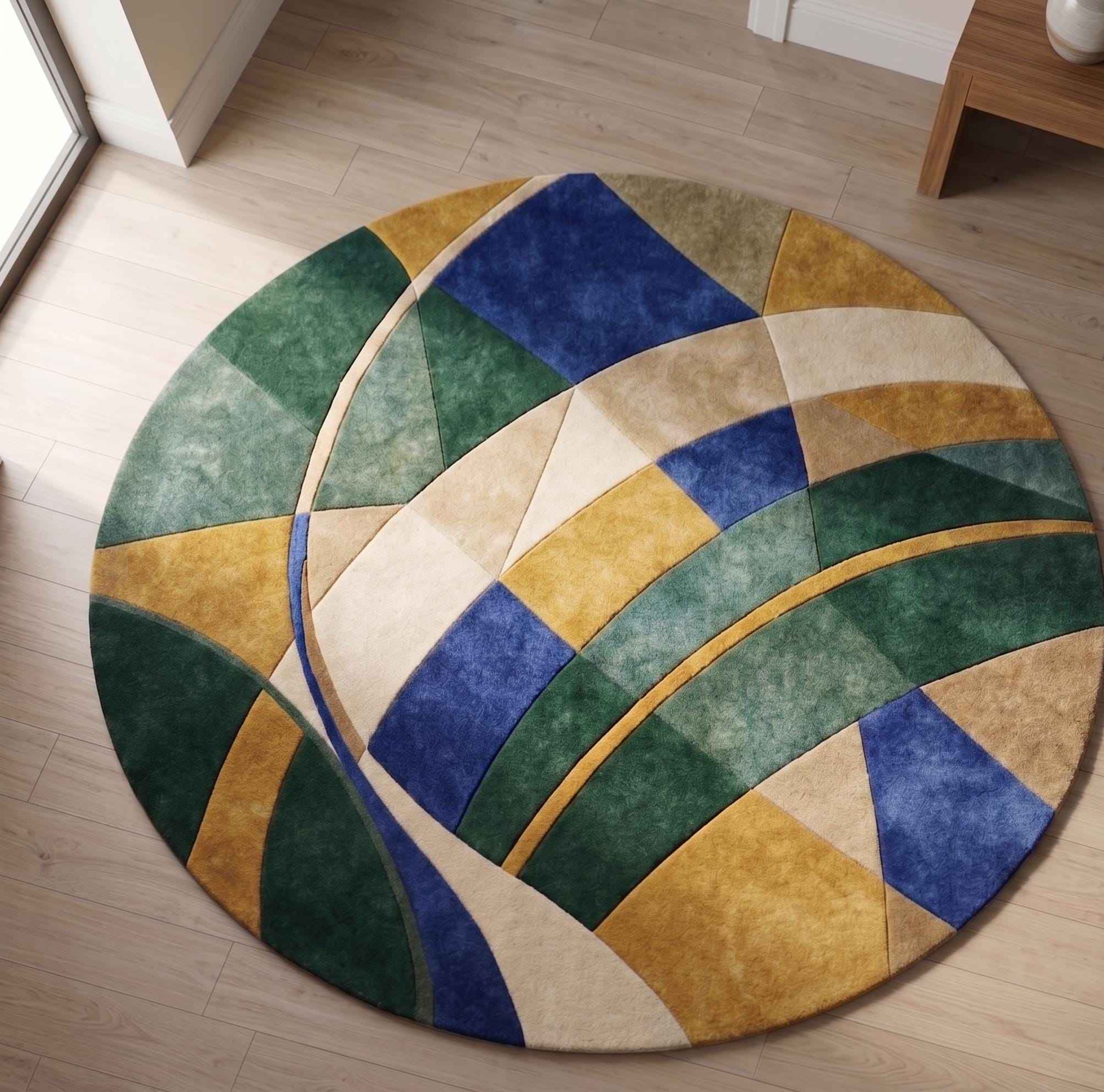 Art Deco Geometric Round Wool Rug Elevate your space with this hand-tufted masterpiece from Rugs Crafter. Blending Art Deco sophistication with Boho Chic warmth, this circular rug is the ultimate statement piece for modern interiors.